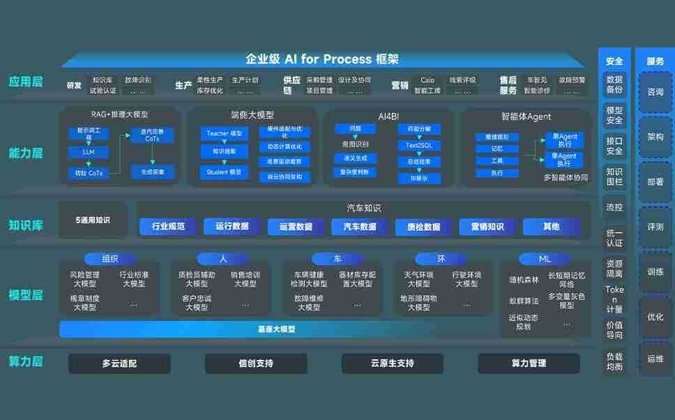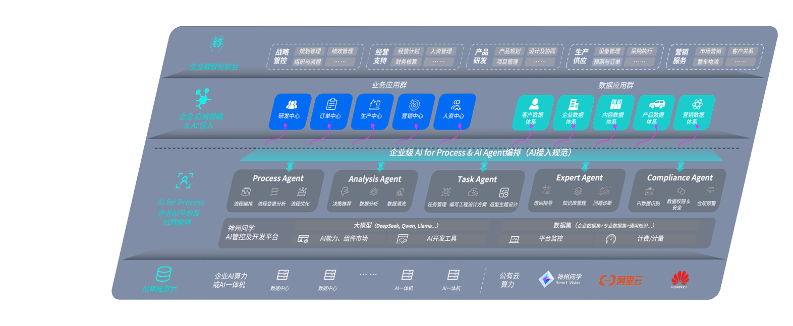 NG娱乐问学智车解决方案是一套基于AI技术的汽车行业智能化系统,,,,覆盖从底层算力到顶层AI应用的全栈方案。。。方案由算力层、、、、模型层和应用层组成:算力层,,方案支持多种一体机配置,,具备云端灵活部署、、多云适配以及动态优化计算资源的能力;模型层,,,,NG娱乐问学平台版提供了企业级AI应用一站式构建与管理平台,,支持基于后训练强化技术的汽车企业专属模型的训练、、评测和运营;应用层,,,NG娱乐问学DeepSeek版提供包括超级员工、、、智能招采、、智能营销、、、、智能客服、、、AI for BI等一系列解决方案,,,,可助力汽车行业实现数字化转型,,,让管理更智能、、、响应更敏捷。。
